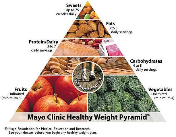 Below is a sample menu based on the Mayo Clinic Healthy Weight Pyramid.